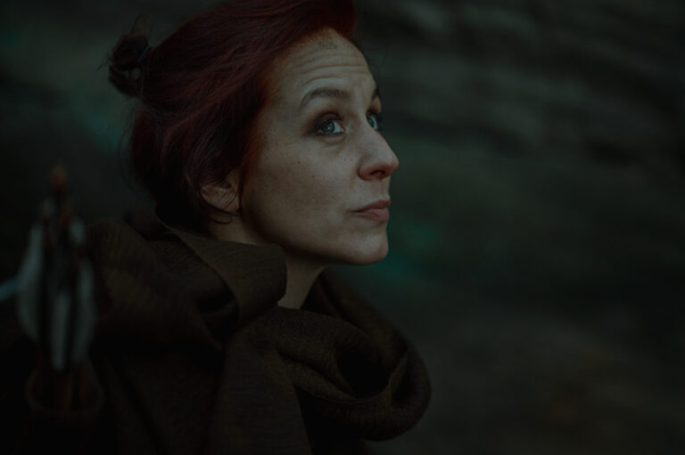 To vše co v mém životě bylo, mě tvarovalo a pak … pak slyším slova fotografky … jsi bojovnice, tohle všechno tady ti patří, ukaž tu sílu, nebuď měkká. Naser se trochu. Tělo mi svírá kožený korzet, v pase mám dýku a na ramenou šípy.