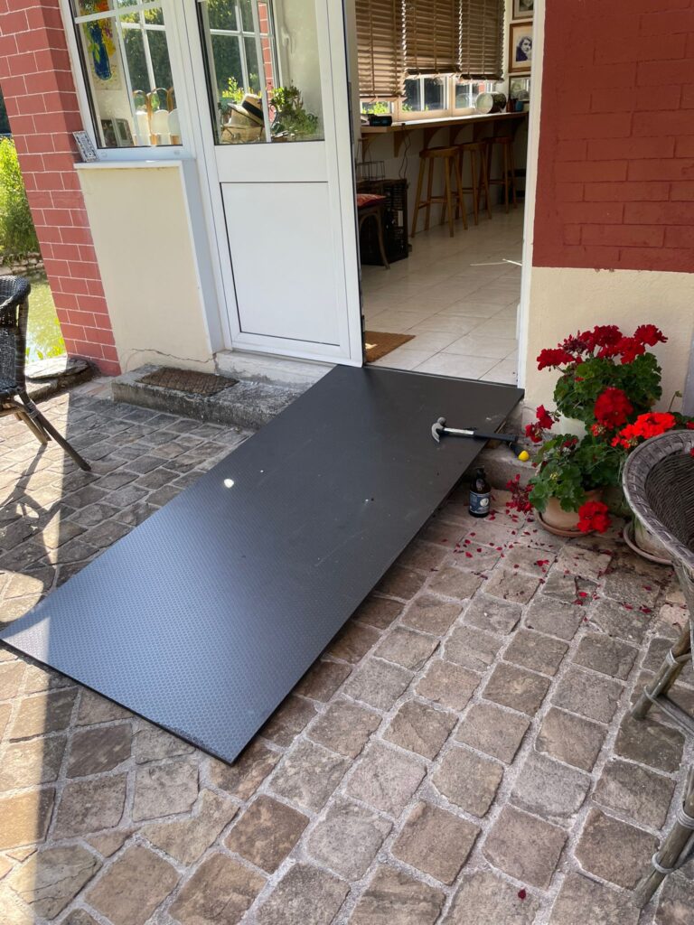 Během několika málo dní nám tato velice ochotná paní vše proměřila a vše bylo ujednáno. Její muž dokonce pro Aleše vyrobil nájezd, aby se nám snáze zdolávaly dva schůdky vedoucí do domu. 🏰