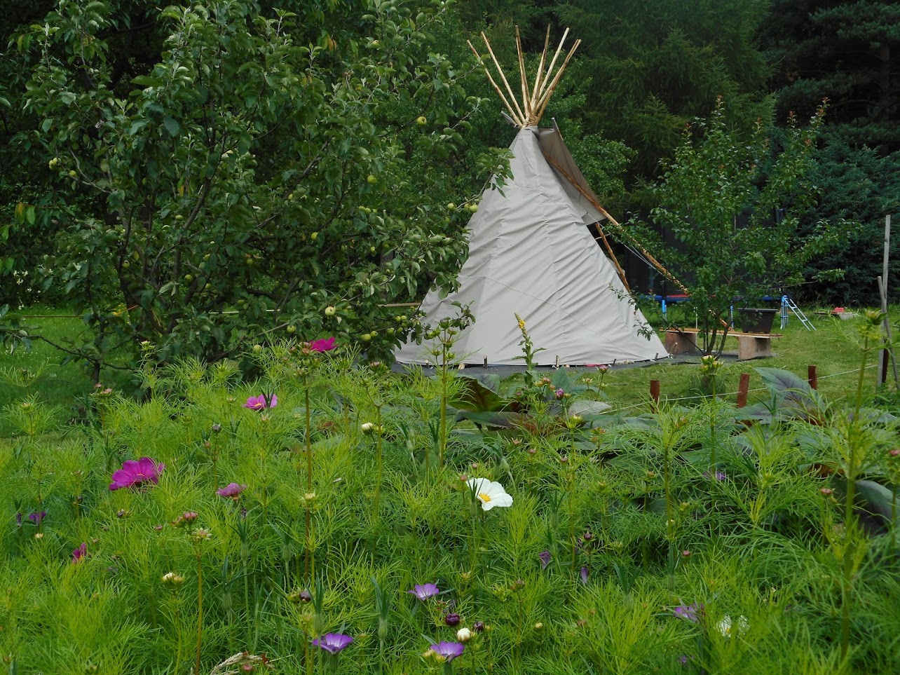 Už 2 roky spíme venku za každého počasí. Rosa na nás nepadá a déšť nás nezažene. Zato pozorujeme s úžasem měnící se barvy v zahradě, když svítá a posloucháme štěbetající ptactvo, Drozdy, ráno co ráno zápasící s žížalami v ranní rose.