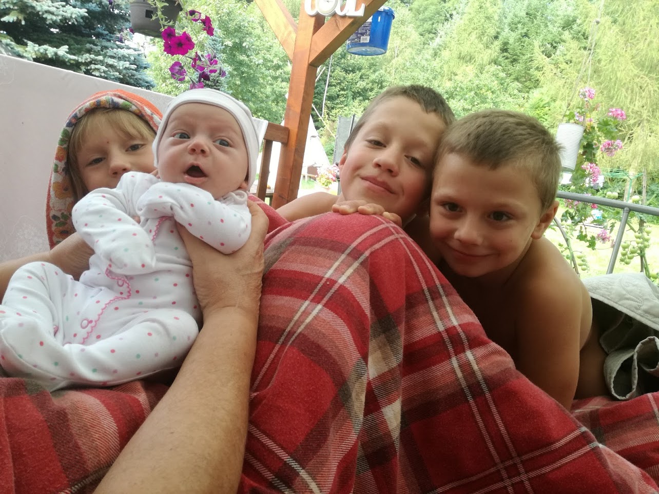 Ve spaní venku se k nám celou sezonu přidávali děti, dle svých potřeb…ty mají své postýlky uvnitř, ale moc v nich od jara do podzimu nepobudou. Střídají , lavičky, trampolínu, teepee , nebo sedačku co je pod pergolou také. Dokonce s námi toto léto, spalo venku celou dobu naše novorozené 4 dítě. Poctivě zabalená spala jako andílek .