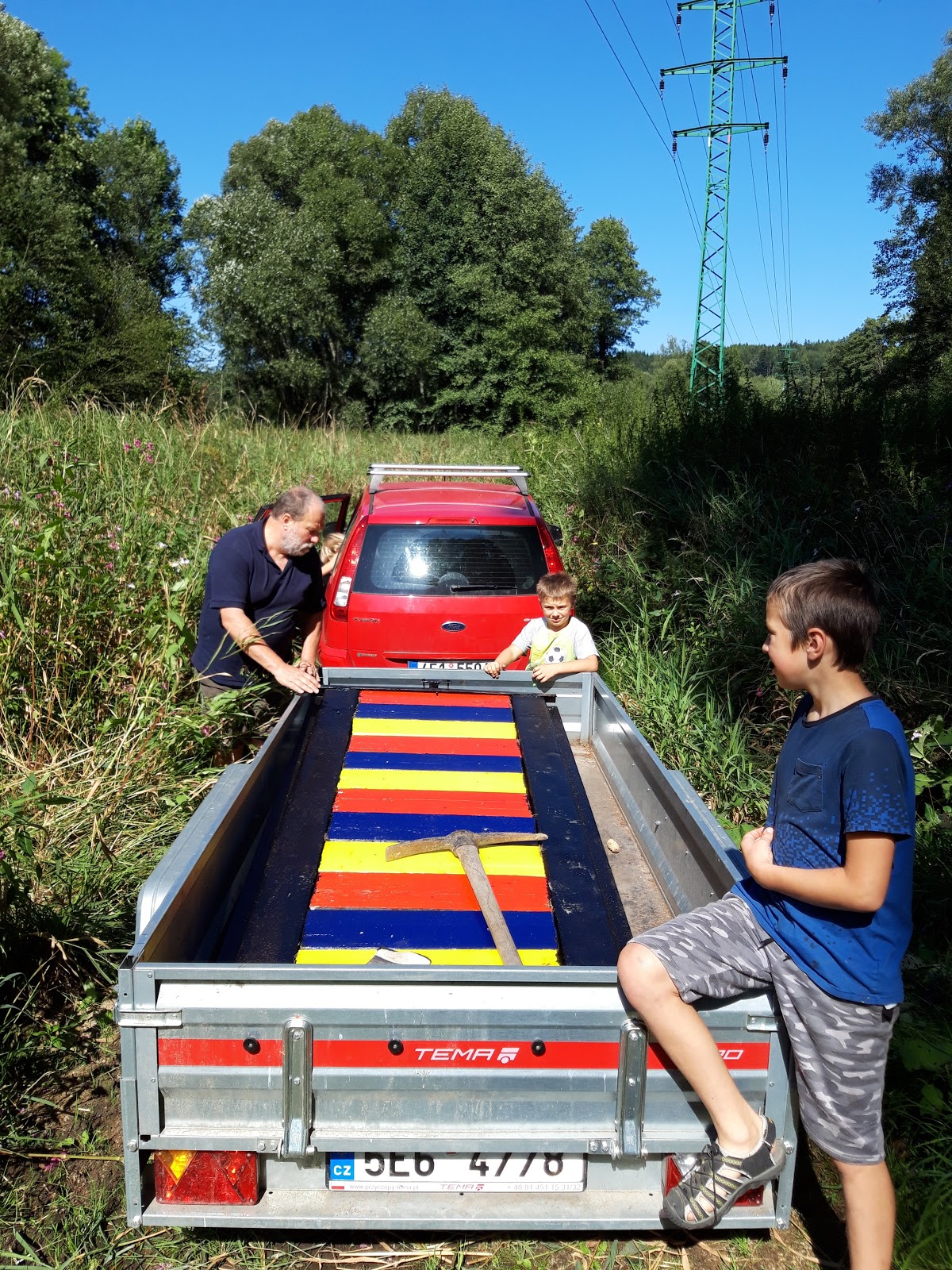 Letos nám došla trpělivost! Čas dozrál. Přišel čas vybudovat něco, co – jak pevně doufáme – vydrží podzimní deště i jarní tání a po čemž se dá bez strachu přejet kočárkem i kolem. Přišel čas na lávku, co poslouží všem a zejména nám! Nám však nejvíce – připomene nám pokaždé, že bláznivé nápady jsou často ty nejlepší, že dobrá věc nemusí stát skoro nic a taky, že tvořit cokoli společně je prostě věc plná vzpomínek. Těch krásných, barevných, těch, které si prostě chcete pamatovat!